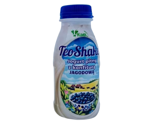 Składniki: mleko pasteryzowane, konfitura jagodowa ekstra 14% (jagody, cukier trzcinowy), żywe kultury bakterii jogurtowych, Bifidobacterium lactis (BB-12).