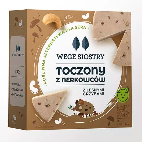 Produkty od Wege Sióstr są tworzone głównie z orzechów nerkowca, poddanych procesowi fermentacji wegańskimi bakteriami kwasu mlekowego. Dodajemy też nieaktywne płatki drożdżowe, a do Toczonych niewielką ilość oleju kokosowego. Taką bazę wzbogacamy aromatycznymi przyprawami oraz ziołami, m.in. wzmacniającą odporność czarnuszką, chrupiącym czerwonym pieprzem, aromatyczną kozieradką, ekologicznym czosnkiem niedźwiedzim lub rozgrzewającymi nitkami chili. W efekcie powstaje doskonała alternatywa dla sera w różnych postaciach: do krojenia, do smarowania i do posypywania.